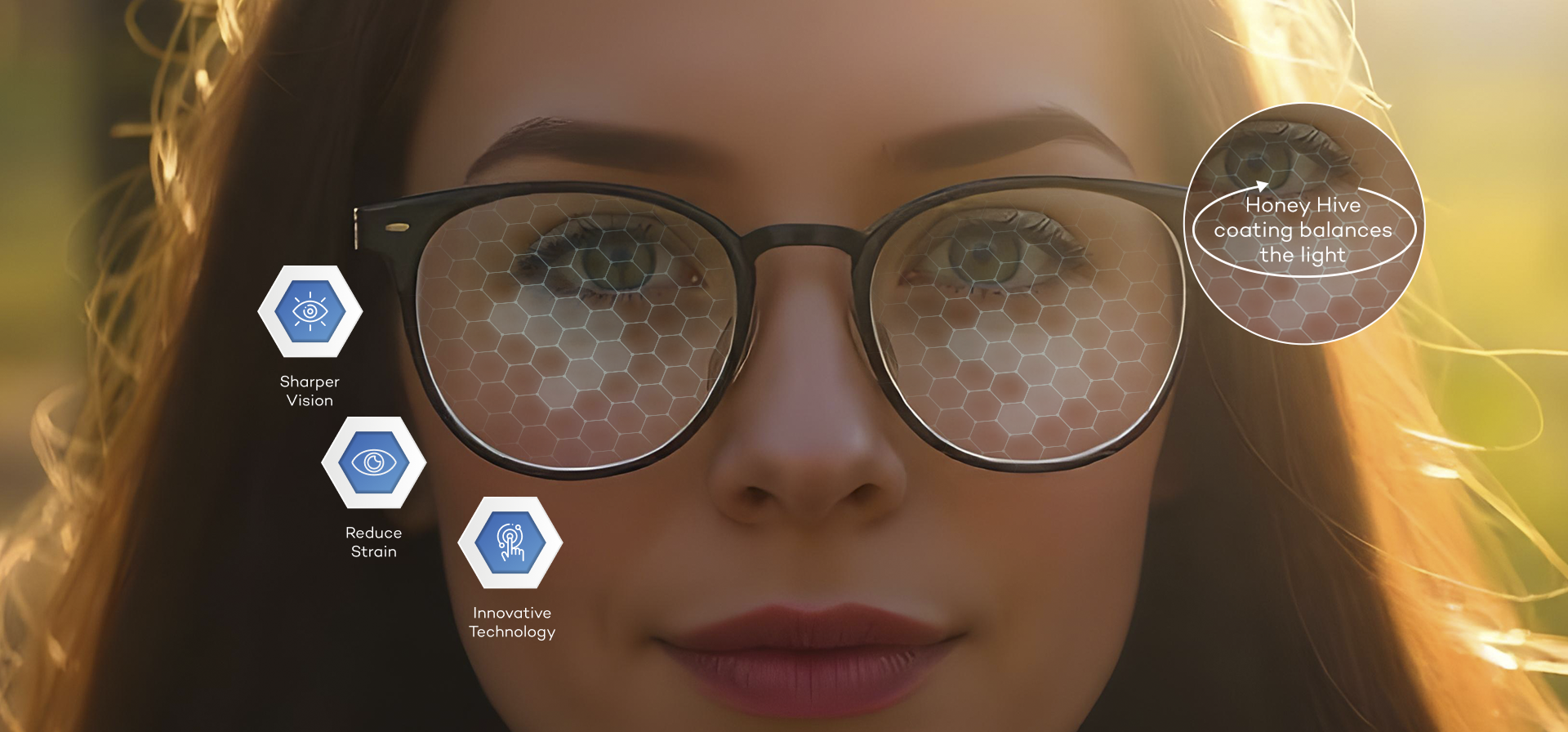 Nature’s honey hive pattern also plays an important role when applied as a unique coating to a lens surface.